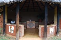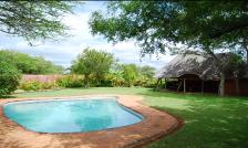The swimming pool is situated close to the individual lodges and near the entertainment room. It is located on a large grass garden with trees and thatched lapa providing the necessary protection form the sun. |